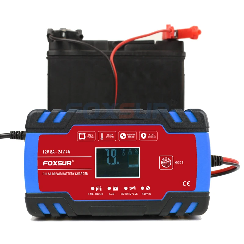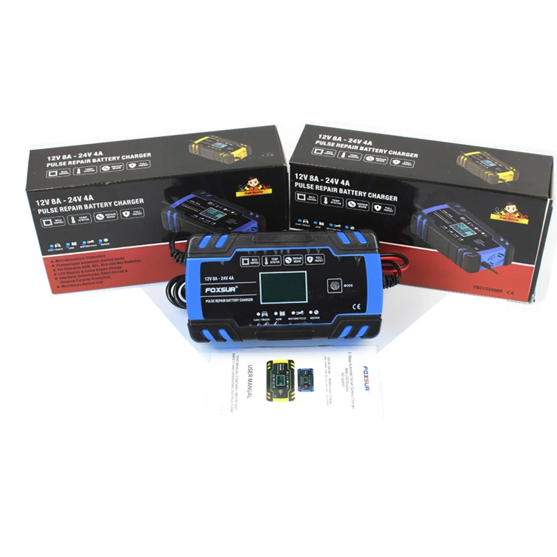 Зарядное устройство FOXSUR для автомобильных аккумуляторов, 12 В, 8 А, 24 В, 4 а