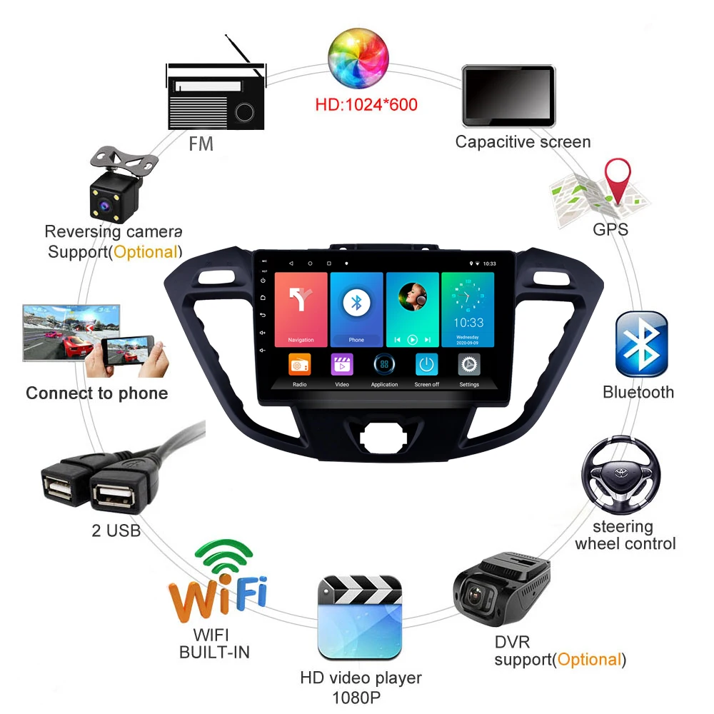 CarPlay Автомагнитола Магнитола Автомобильный мультимедийный плеер easteregg, 9 дюймов, 2 Din, Android, Wi-Fi, GPS-навигация для Ford Transit Tourneo Custom 2012-2021, головное устройство 2 дин андройд