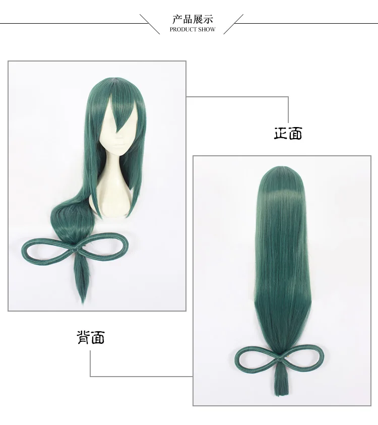 Парики для косплея My Hero Academia Asui Tsuyu темно-зеленые, длинн...