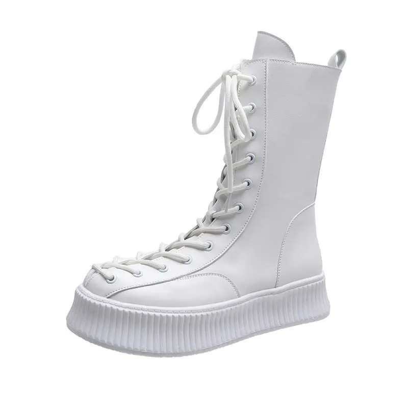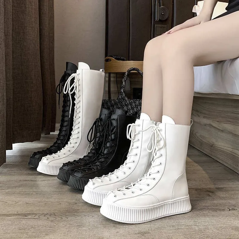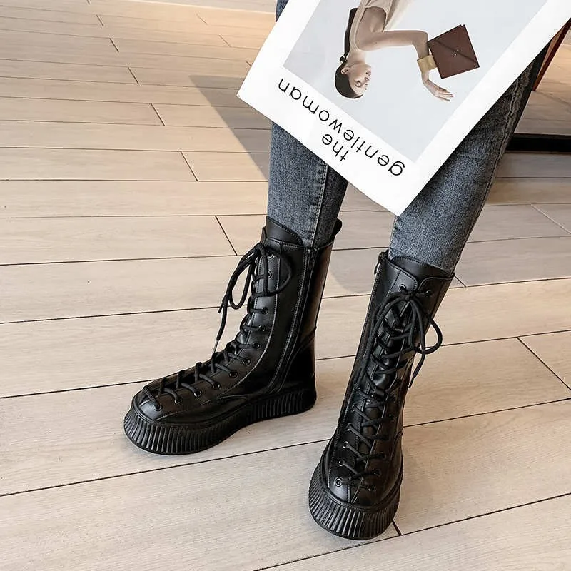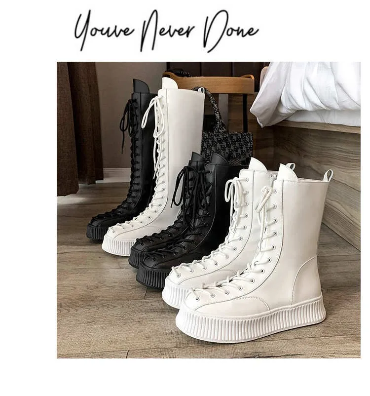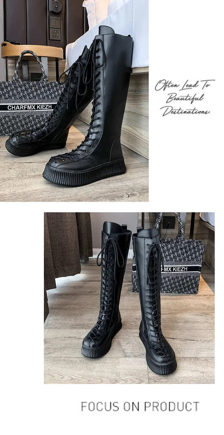 Женские ботинки челси на шнуровке, высокие сапоги до колена из иску...