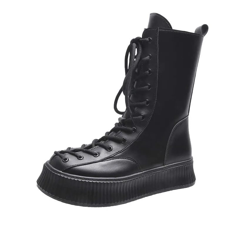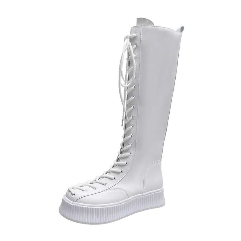 Сапоги до колена из искусственной кожи на толстой подошве, женские ...