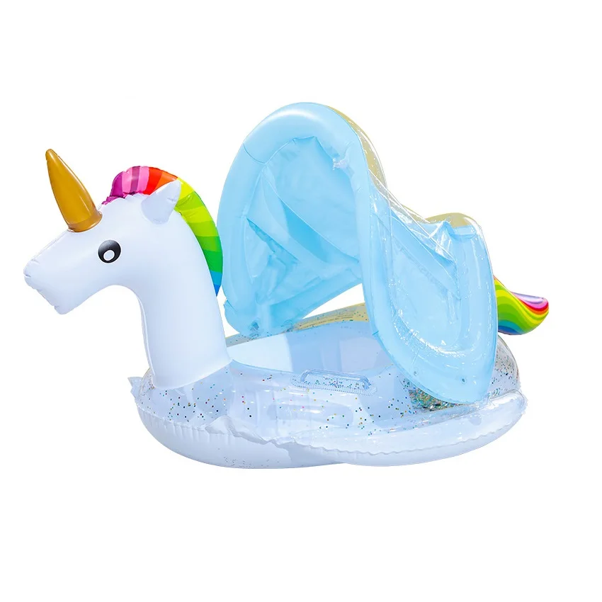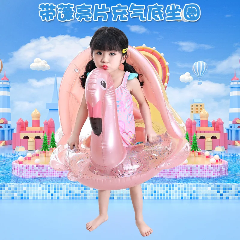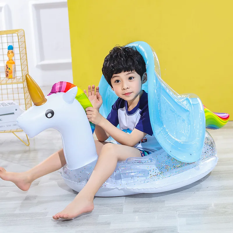 Надувное детское кольцо для плавания, круг для купания с тенем в виде фламинго, единорога, поплавок для бассейна, забавные игрушки для воды, сиденье для бассейна