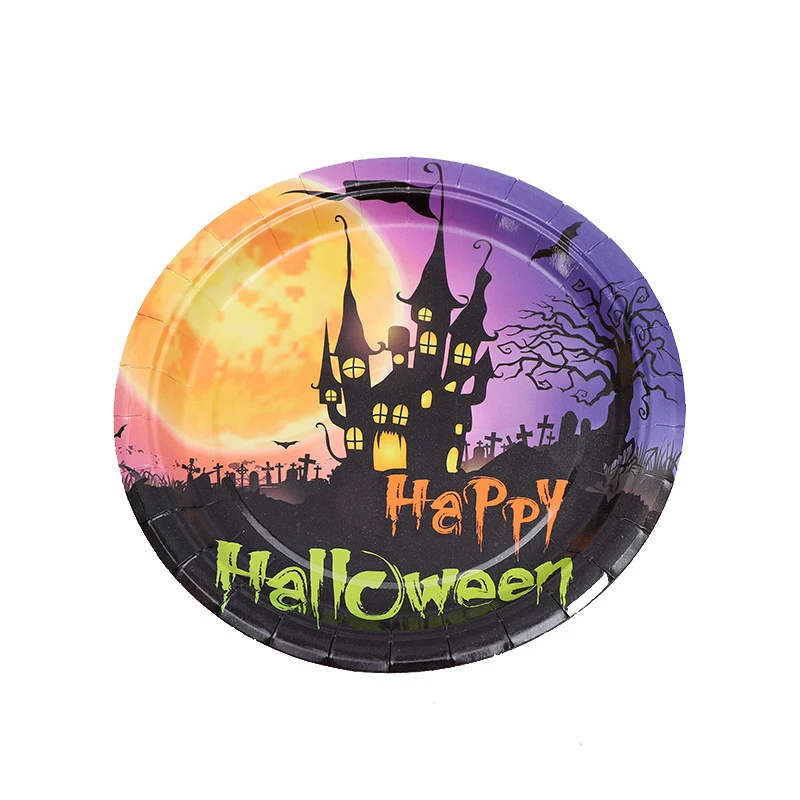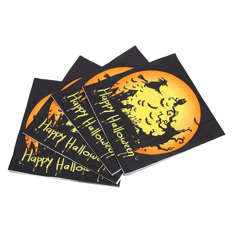 Набор одноразовых столовых приборов на Хэллоуин, баннер, декоративные салфетки, бумажные чашки, поставщик, украшения на Хэллоуин