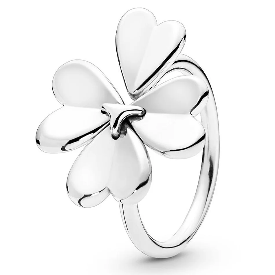 Женское кольцо с цветком клевера, серебро 925 пробы, со сверкающим бантом