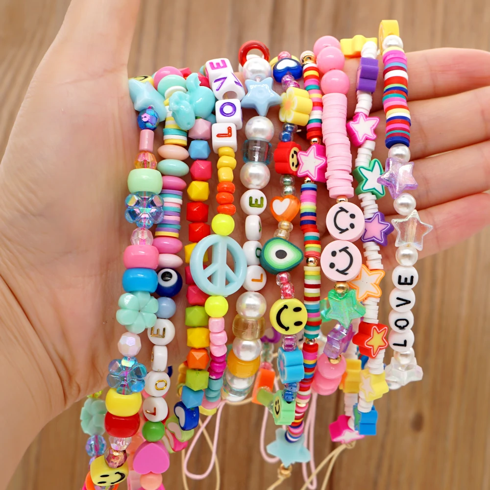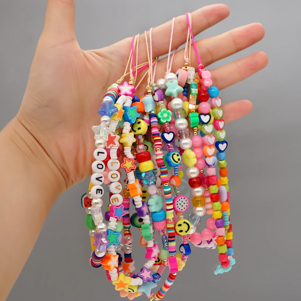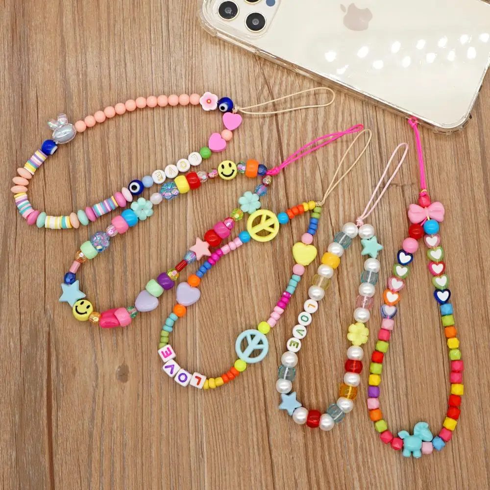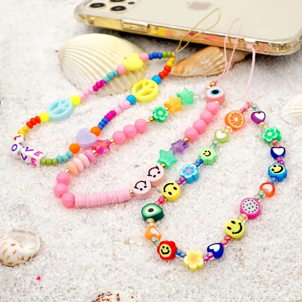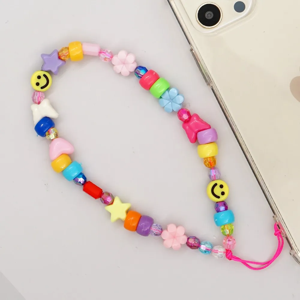 2021 женские ювелирные изделия со смайликом для телефона, Разноцветные Подвески из бисера в форме звезды для мобильной цепочки, бусины-подвески для телефона, ремешок цепочка