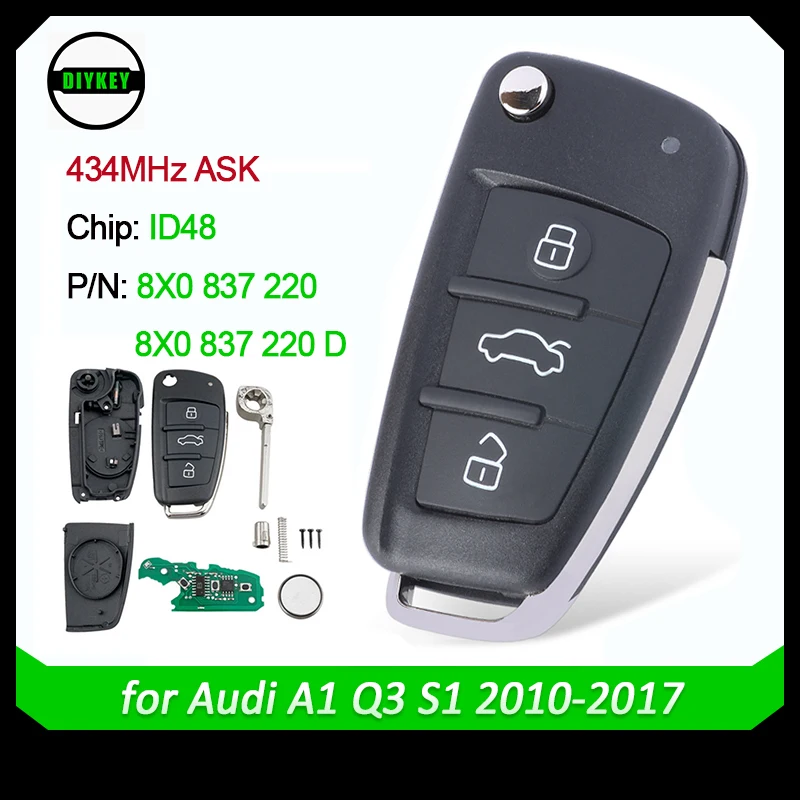Пульт дистанционного управления DIYKEY для Audi A1 Q3 S1 8X08372208X0837220D, встроенный чип ID48 434 МГц ASK 8X0 837 220 8X0 837 220 D