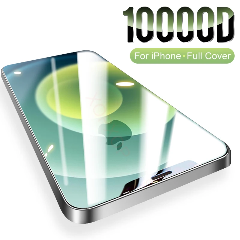 Изогнутое полноэкранное защитное стекло 10000D для iPhone 12 11 Pro X XR XS Max, закаленное защитное стекло для iPhone 7 8 6S Plus