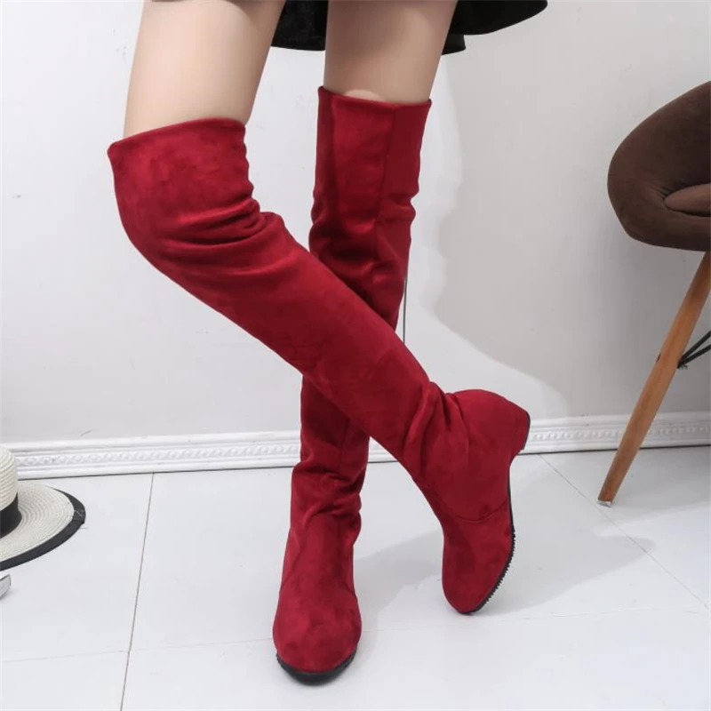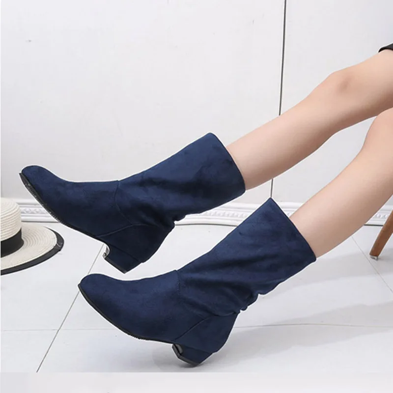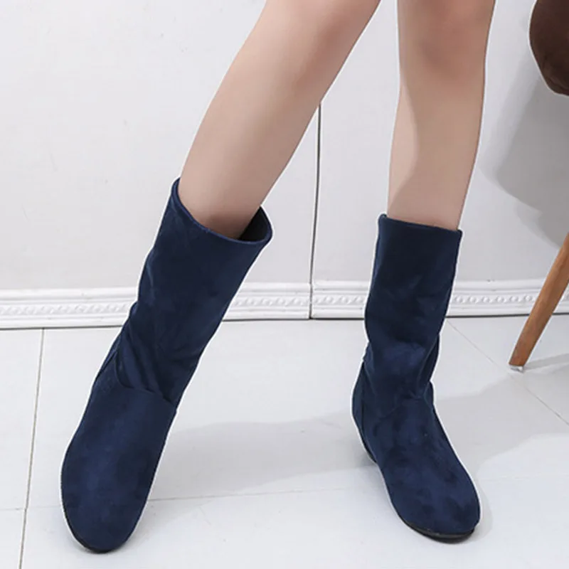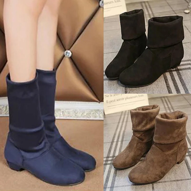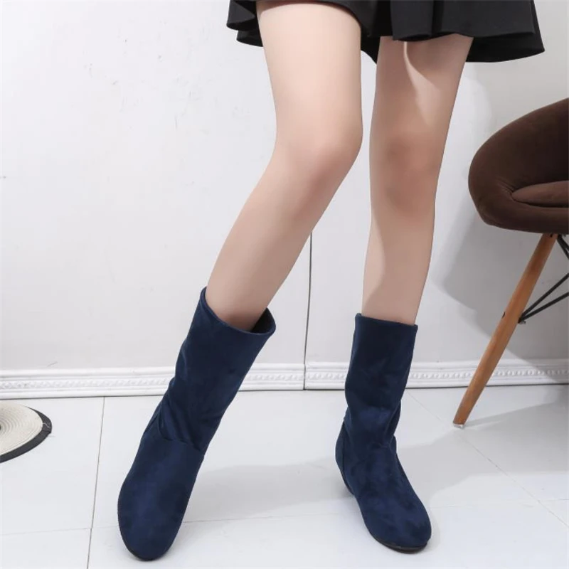 Женские ботинки-мартинсы из эластичной хлопчатобумажной ткани, до середины икры, без застежки, на плоской подошве, Осень-зима 2021