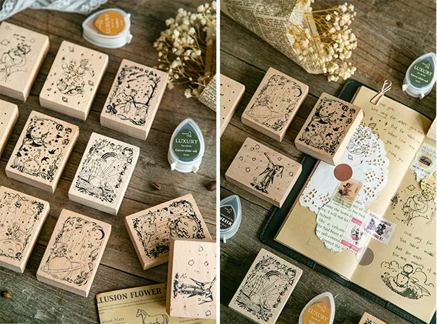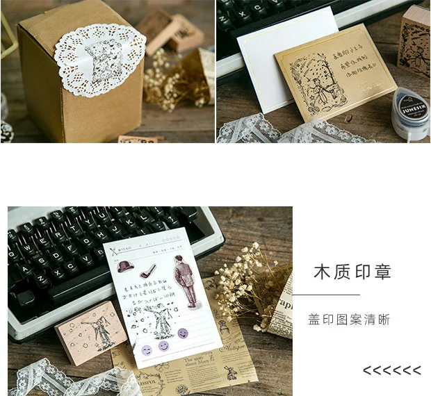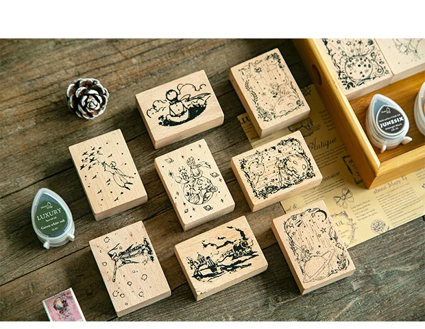Набор винтажных деревянных штампов серии Prince, резиновые уплотнения для рукоделия, Канцтовары для скрапбукинга, справочника, дневника, письма, Декор