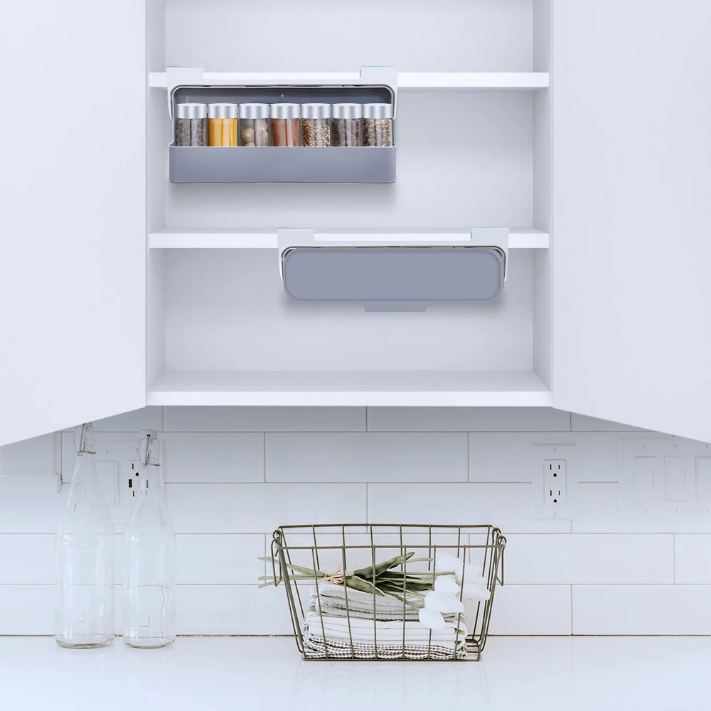 Подставка для специй, Полка для специй, подставка для бутылок для приправ под столом, самоклеящиеся банки для специй, кухонные принадлежности