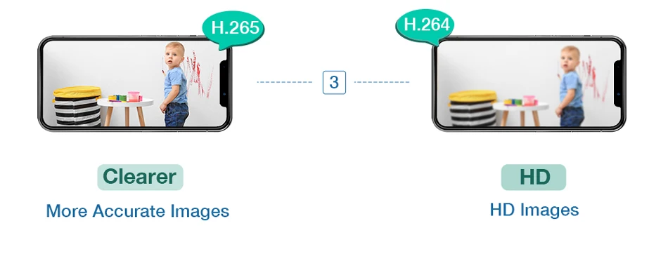 H.265 более четкое, HD разрешение предлагает вам лучшее качество изображения более низкую скорость.