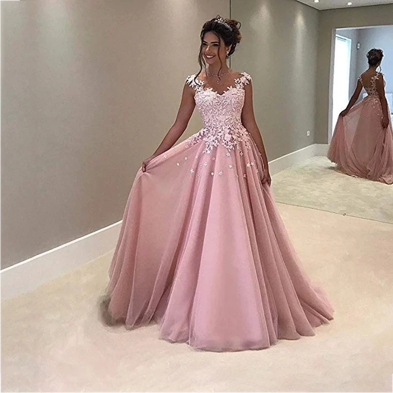 Женское Тюлевое платье принцессы, розовое Длинное Элегантное платье с открытой спиной и V-образным вырезом для выпускного вечера