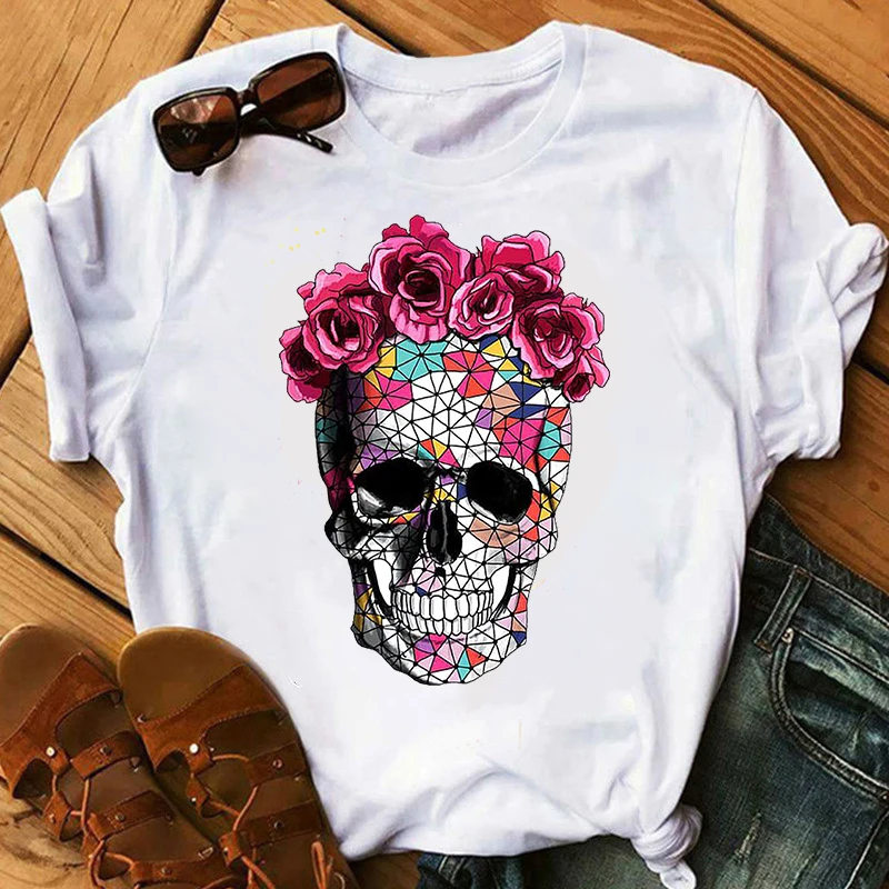 Летняя камуфляжная женская футболка с черепом, леопардовая бандана, футболка большого размера с принтом, Женский Забавный Топ, модная футболка с рукавами, одежда s