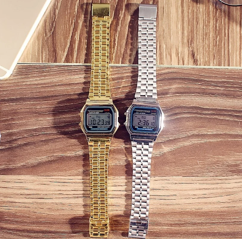 Роскошные часы со стальным ремешком F91W, ретро светодиодные цифров...
