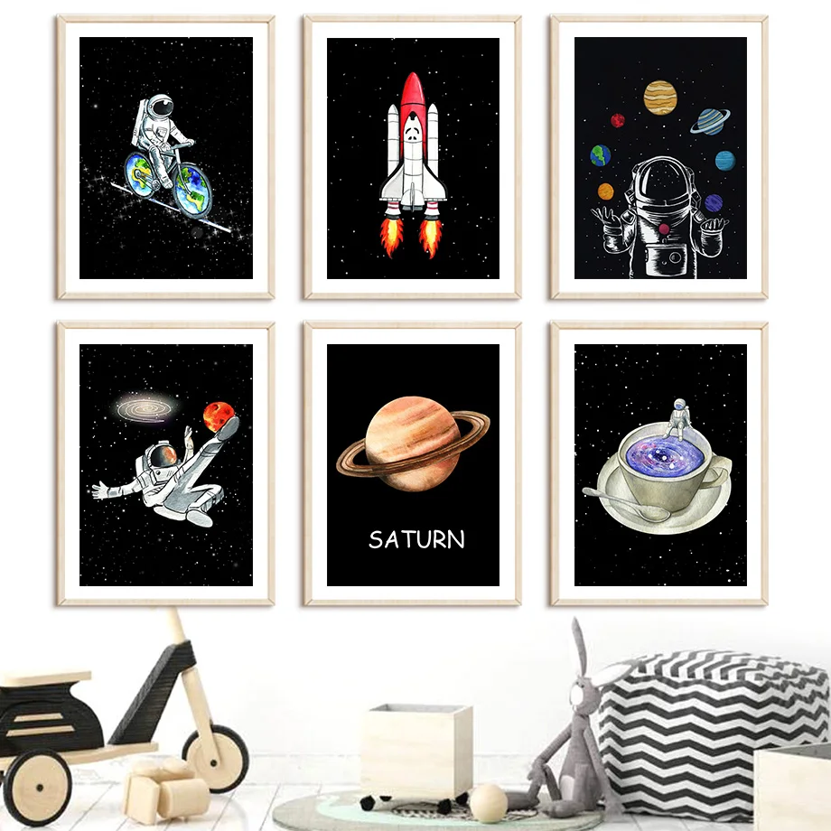 Плакаты и принты космоса, ракеты, планеты, звезды, луна, мультфильм...
