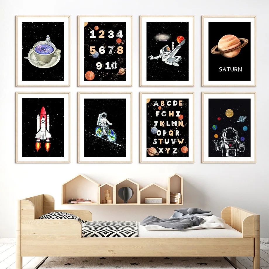 Астронавт Космос ракета планет мультфильм детская комната скандинав...