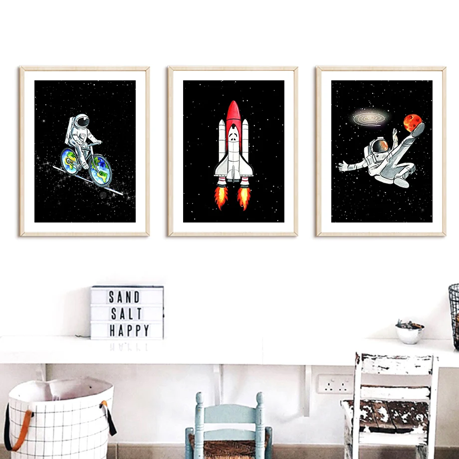 Настенная живопись в скандинавском стиле с космическими космонавты ...