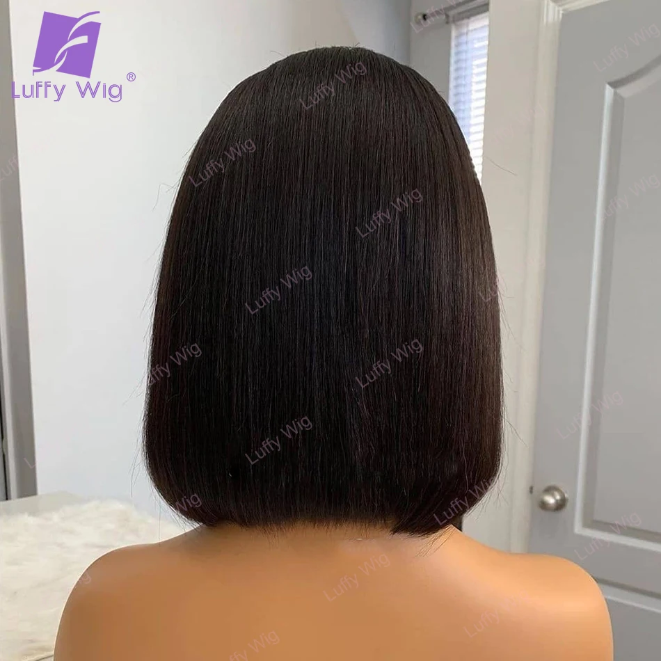 Короткий парик Боб с челкой, бразильские человеческие волосы Remy, прямой парик Боб, плотность 200, без кружева, парик из человеческих волос для черных женщин LUFFY