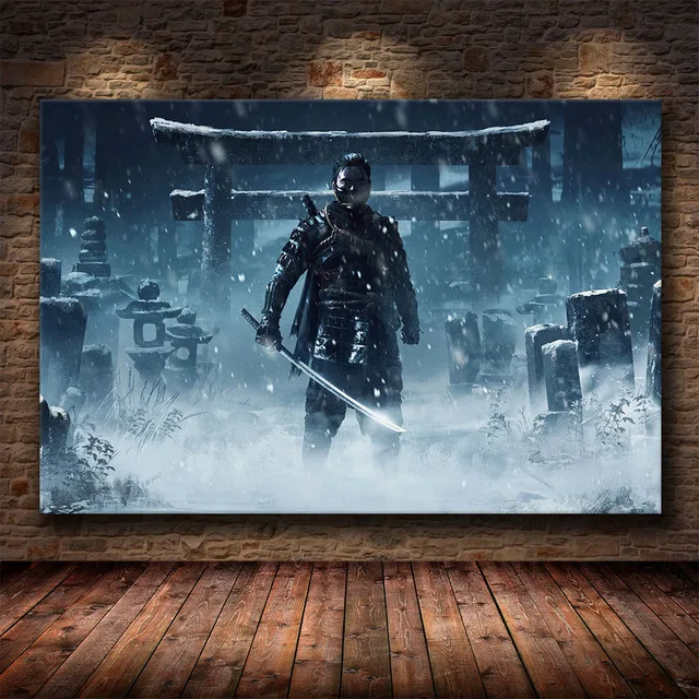 Рисунок по мотивам игры призрака цушимы, ролевые плакаты, Художественная Картина на холсте, для мальчика, комнаты, декоративные настенные картины, декор для гостиной и дома