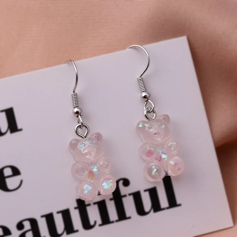 Новые модные блестки Смола мармеладный медведь Висячие серьги для ж...
