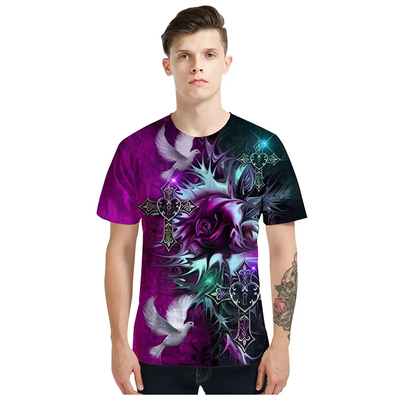Футболка мужская с круглым вырезом, модная повседневная тенниска с 3D-принтом Креста, с изображением Иисуса, майка в христианском стиле с короткими рукавами, лето 2021