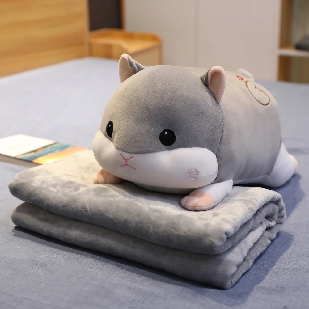 Симпатичный плюшевый игрушечный хомяк 2 в 1, подушка для сна с одея...