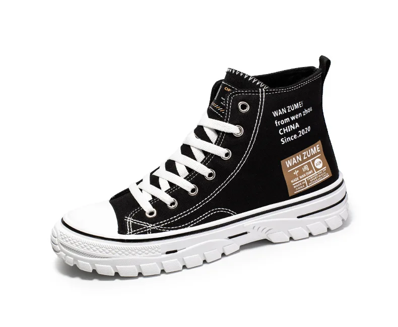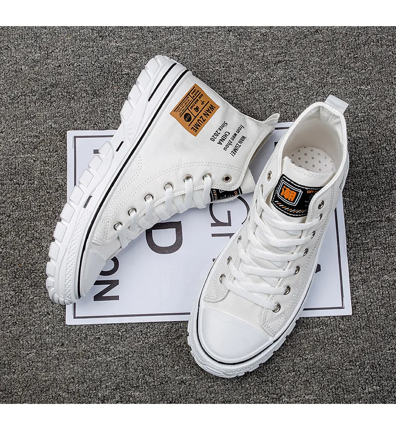 Кеды мужские с нескользящей подошвой, высокие кроссовки, плоская подошва, повседневная обувь, черные, белые
