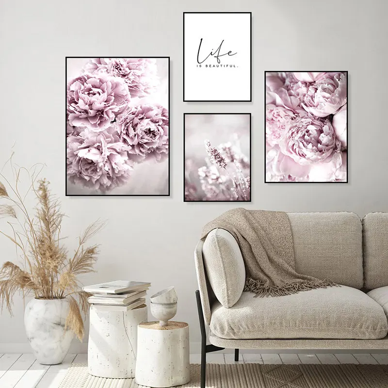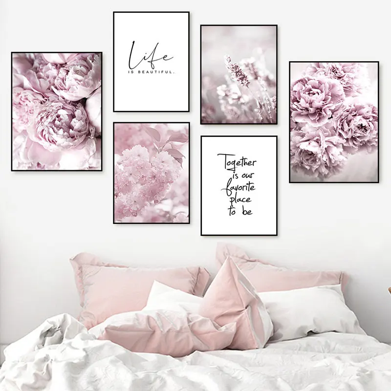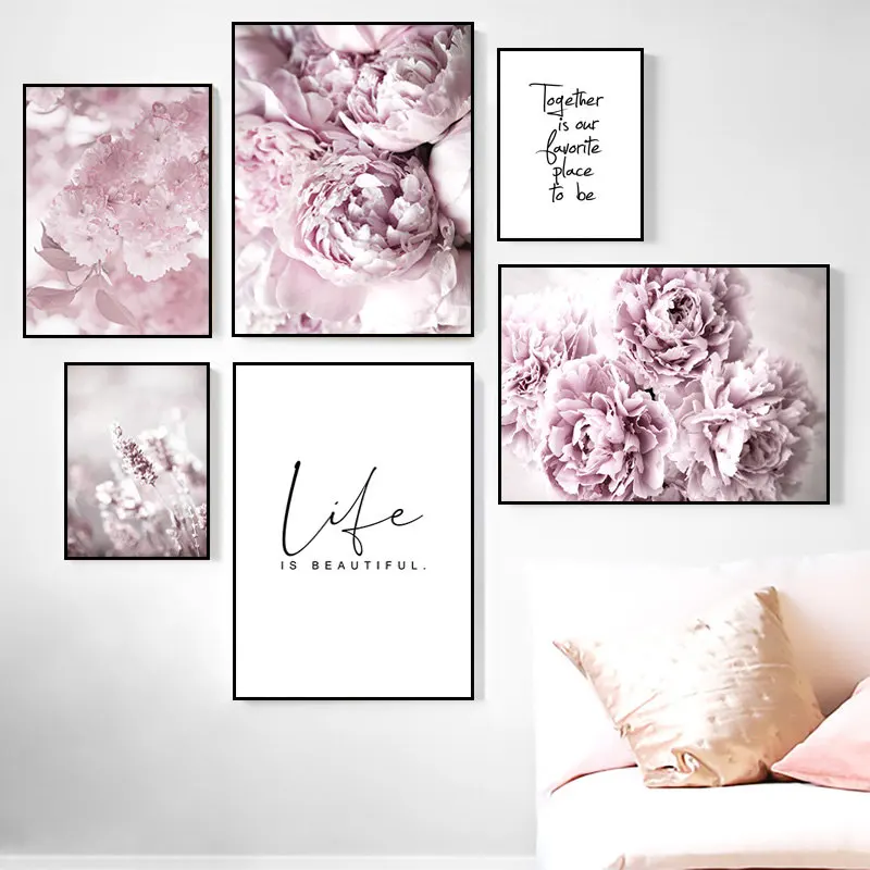 Плакаты в скандинавском стиле с розовыми цветами, Цветущие розы, пионы, настенная живопись, цитаты жизни, настенные картины для декора гостиной HD0101