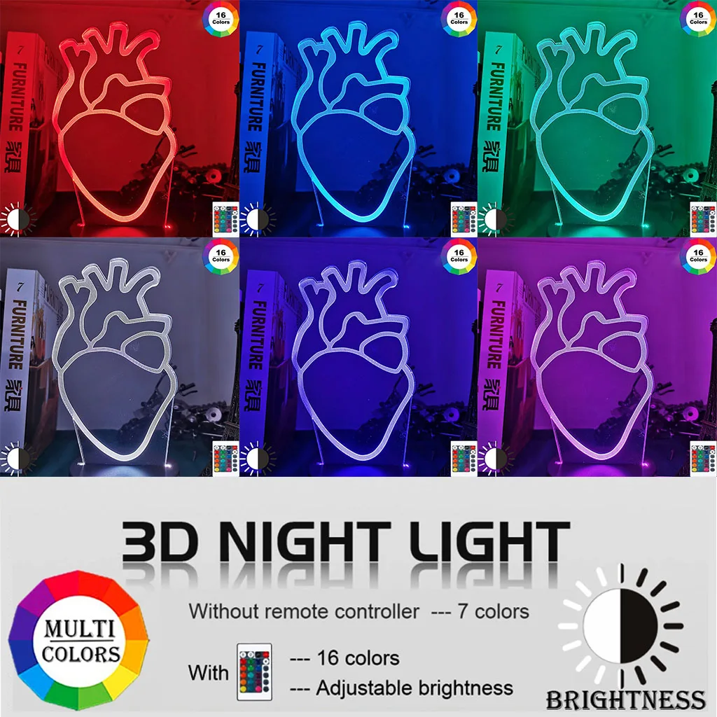 Акриловый светодиодный ночник сердце PNL для спальни украшение меняющий цвет носветильник льник для фанатов подарок декор комнаты QLF сердечки 3d лампа