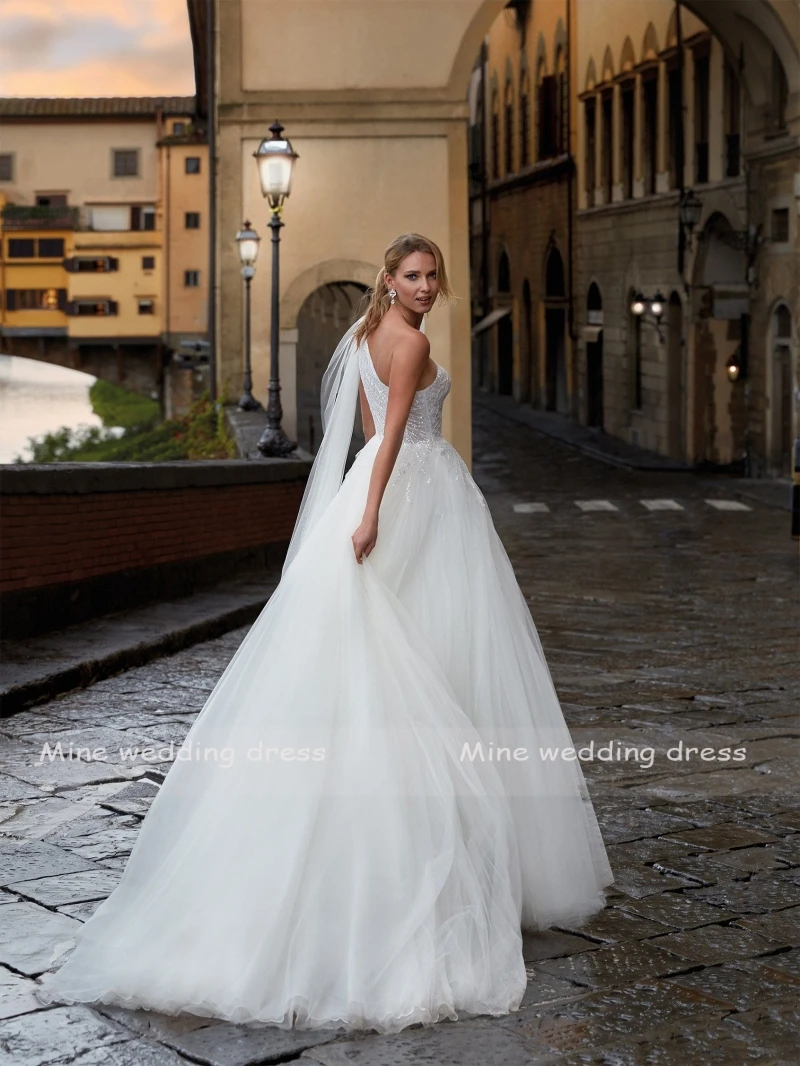 Новинка, бальное платье на одно плечо, белые свадебные платья 2021, свадебное платье с аппликацией, фатиновые Свадебные платья на заказ