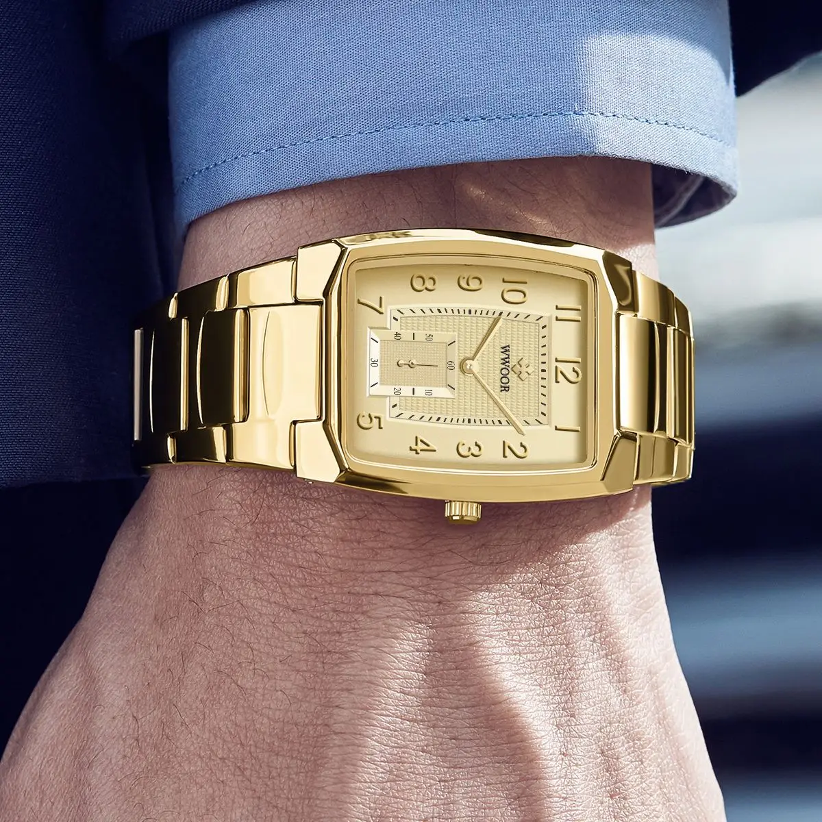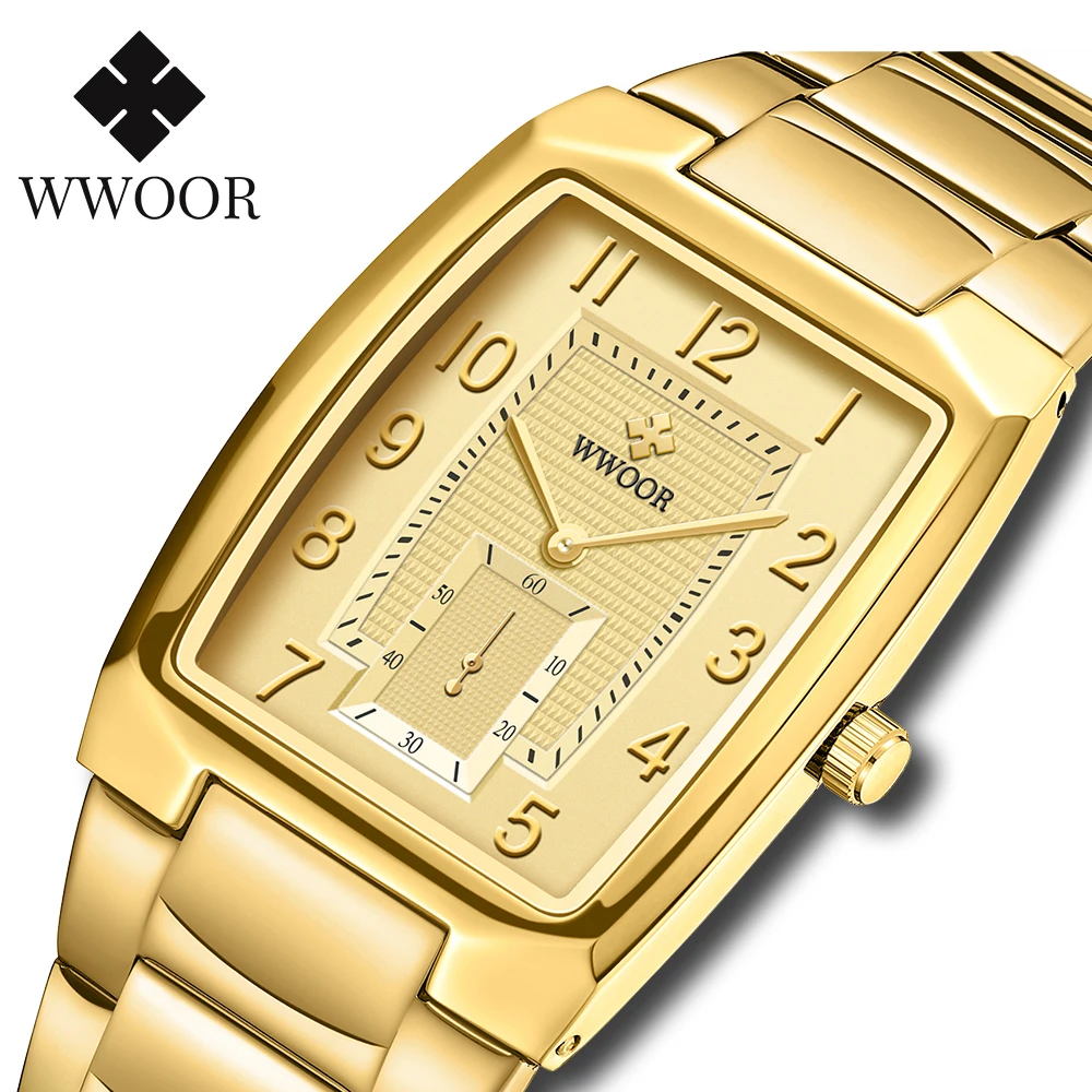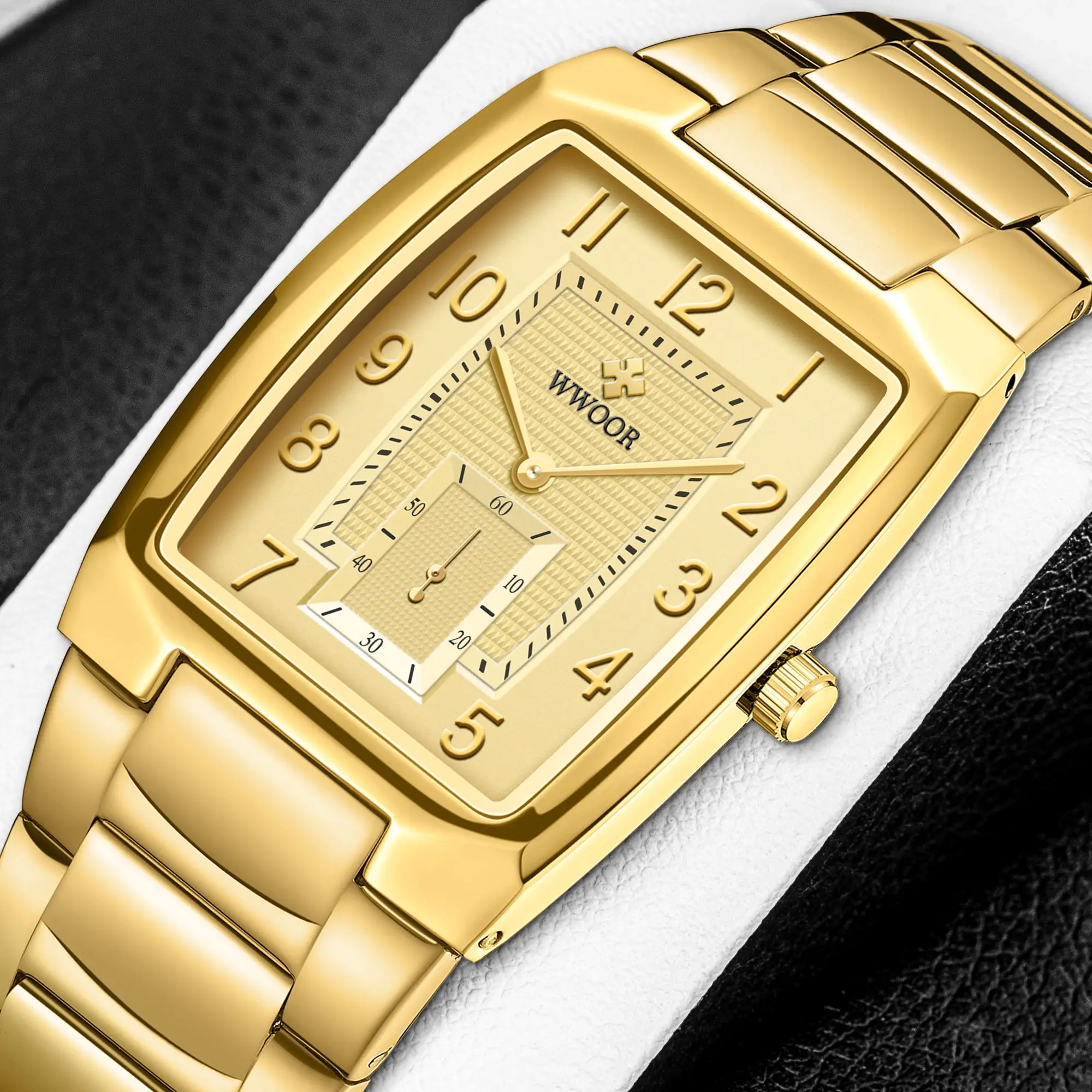 Мужские кварцевые наручные часы WWOOR, квадратные, золотистые, водонепроницаемые, повседневные, 2021