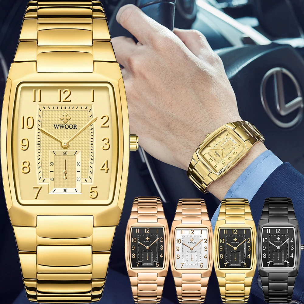 WWOOR 2021 Новый Топ бренд Мужские квадратные золотые модные роскошные повседневные часы кварцевые Деловые водонепроницаемые наручные часы Relogio Masculino