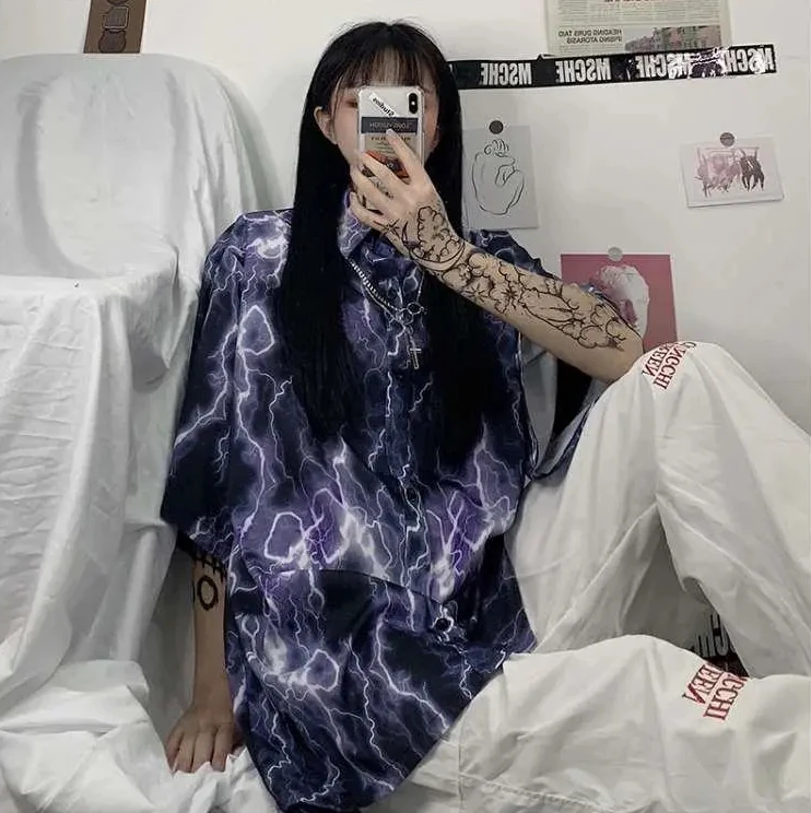 Женская рубашка, Готическая женская блузка Y2k, топ, рубашки, винтажная свободная одежда, модные женские топы с принтом молнии, новинка 2021