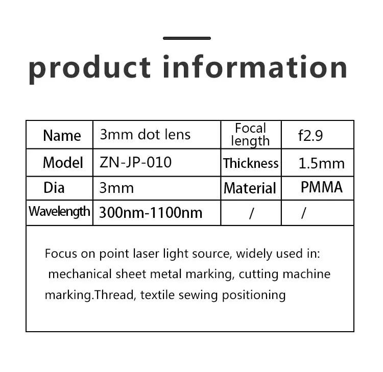 Оптический фокусирующий объектив диаметром 3 мм F2.9, фокусирующий точечный лазерный модуль, биконусная линза, пластиковый материал, лазерные аксессуары, толщина 1,5 мм