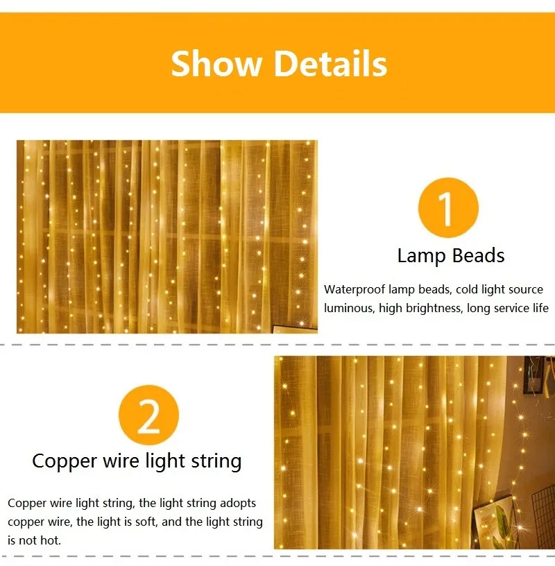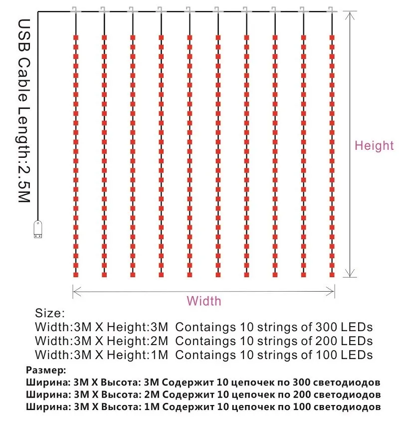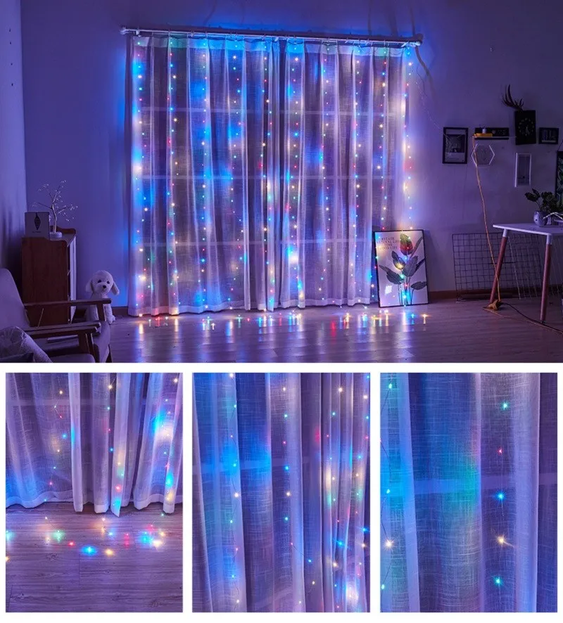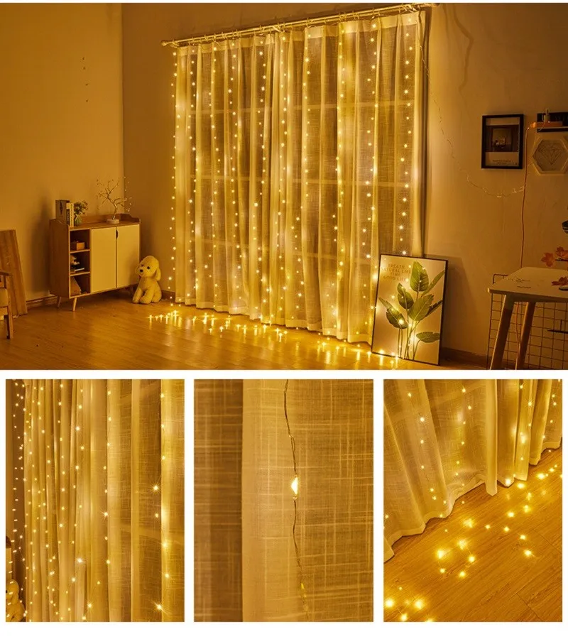Светодиодная гирсветильник-занавеска 3MX3M 3MX2M 3MX1M, USB, 8 режимов дистанционного управления, для нового года, Рождества, свадьбы, дома, окна, спальни