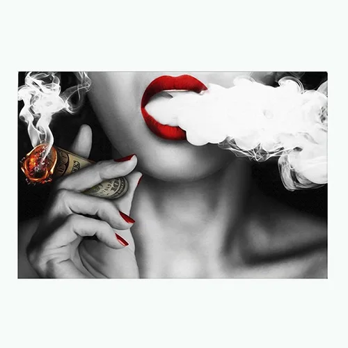 Красная курительная женщина, настенная Картина на холсте, настенное искусство для гостиной, домашний декор (без рамки)
