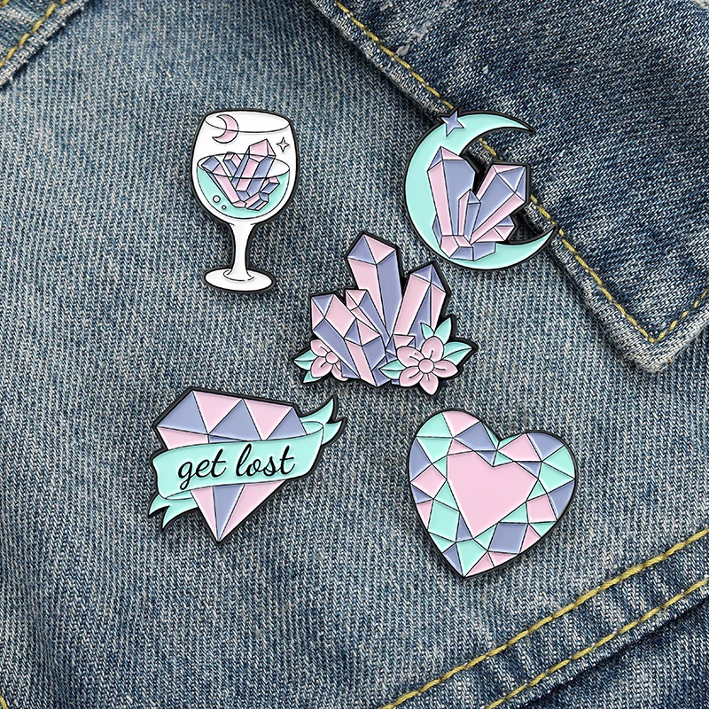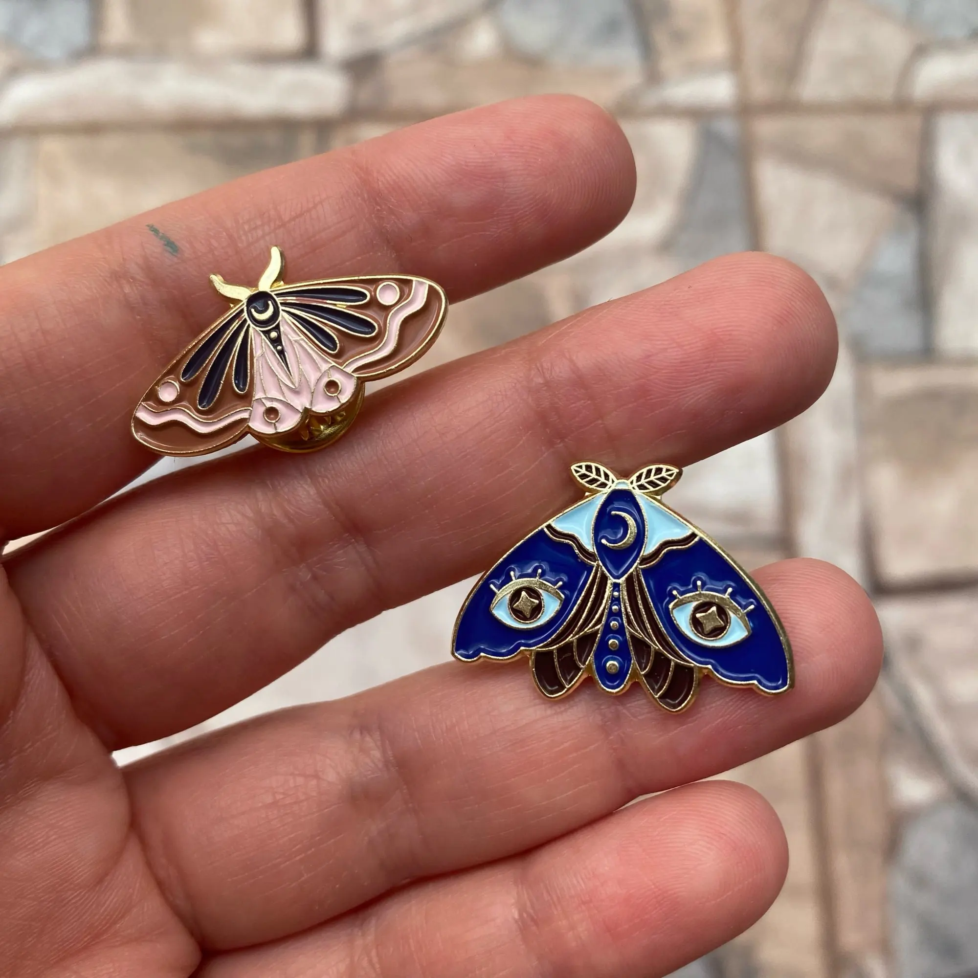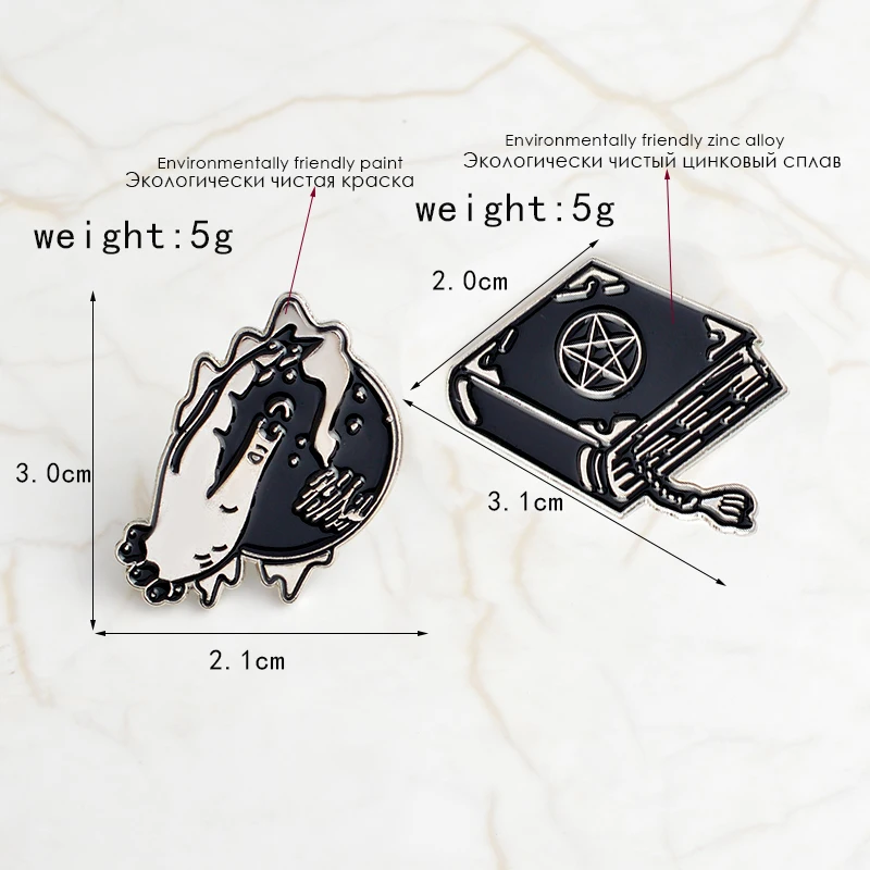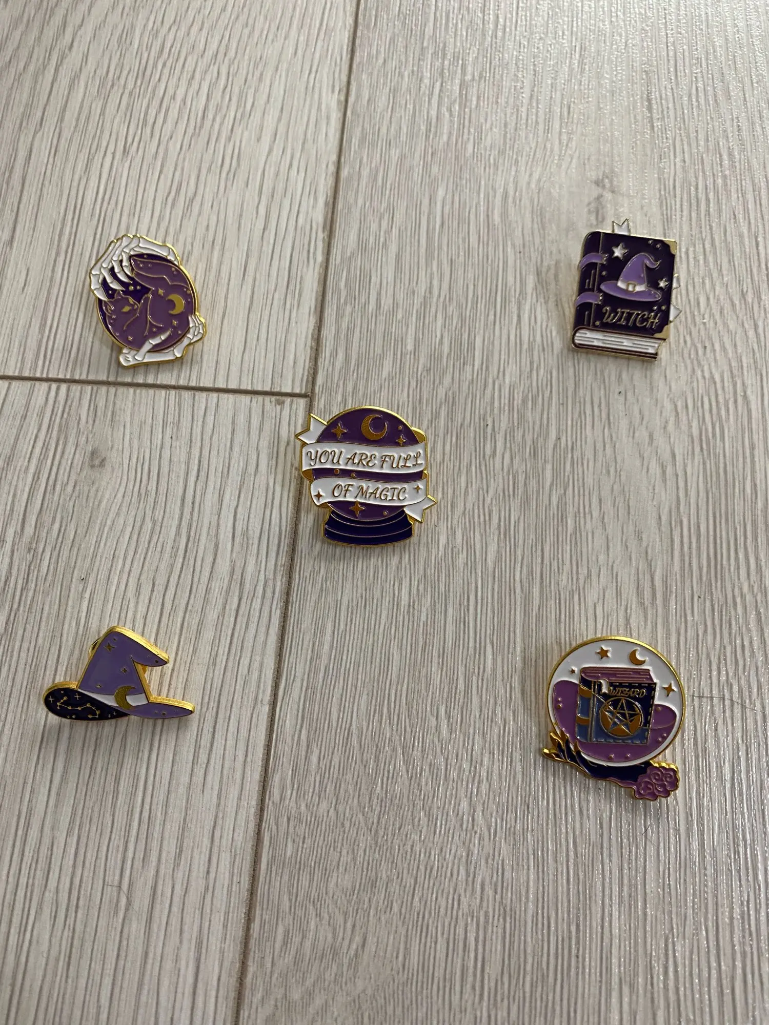 Набор заколок с эмалью ведьмы, пурпурный кристалл, полумесяц, тройная богиня, черные, темные значки, Готическая виккана колдовские украшения