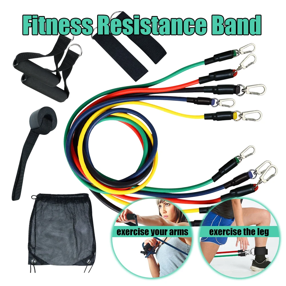 Эластичные ленты из латекса для занятий йогой, фитнесом, спортзалом, 11 шт.компл.