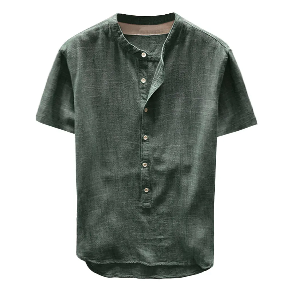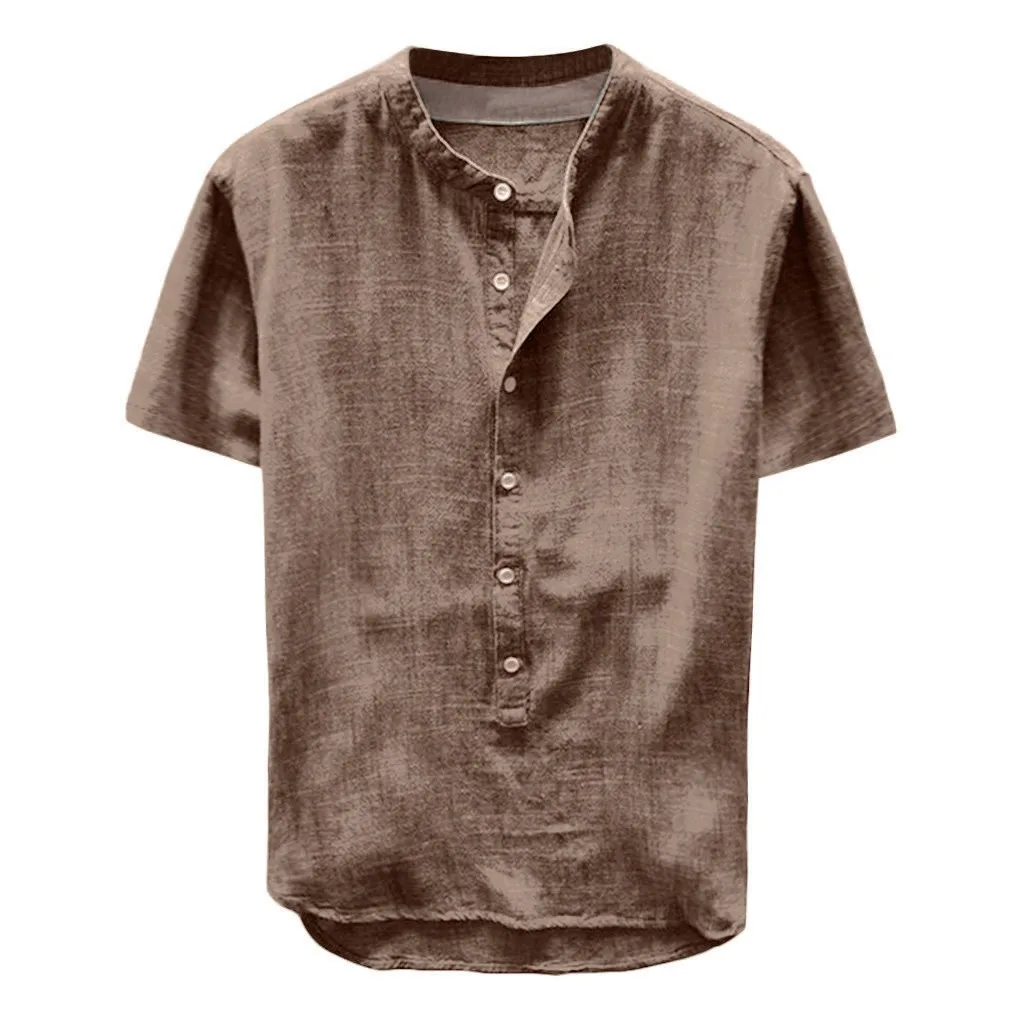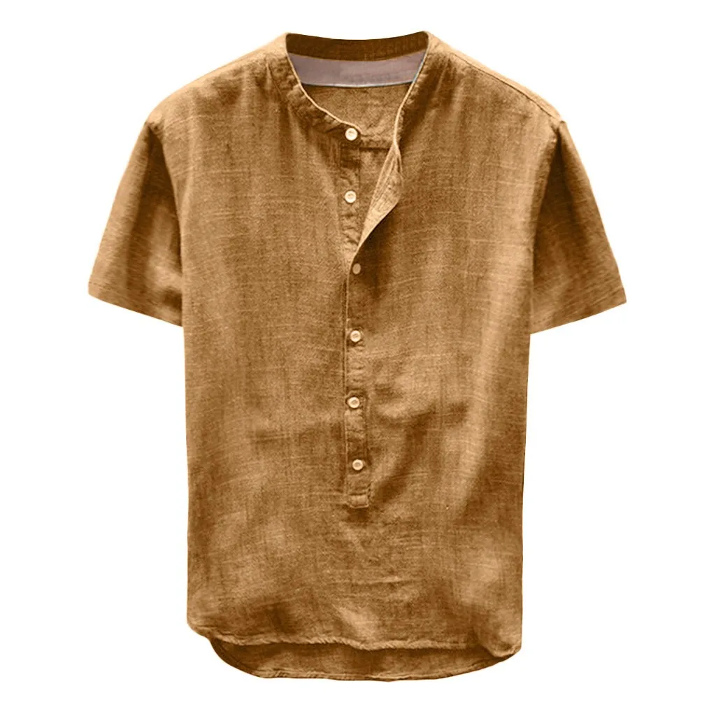 Модная Мужская Летняя Повседневная Блузка на пуговицах из льна и хлопка с коротким рукавом