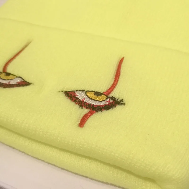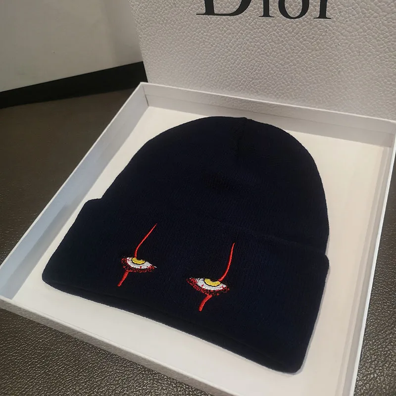 DT009 зимняя мягкая однотонная трикотажная шапка унисекс с блестящими страшными глазами