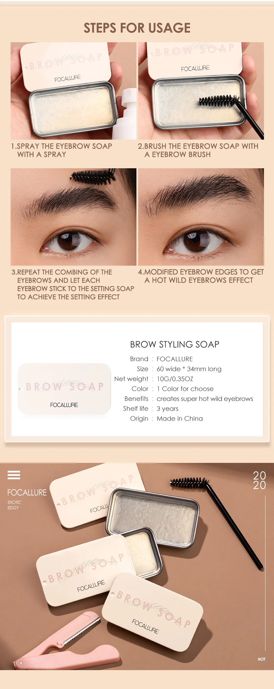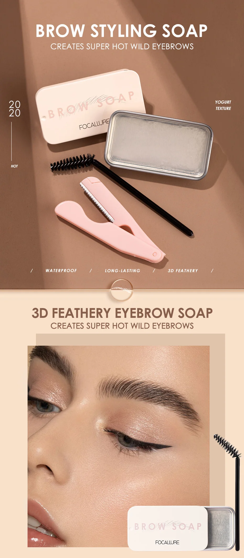 FOCALLURE 2 шт./лот гель для бровей брови воск водонепроницаемый длительный 3D Пернатый дикий бровей Стайлинг мыло для женщин бровей Макияж