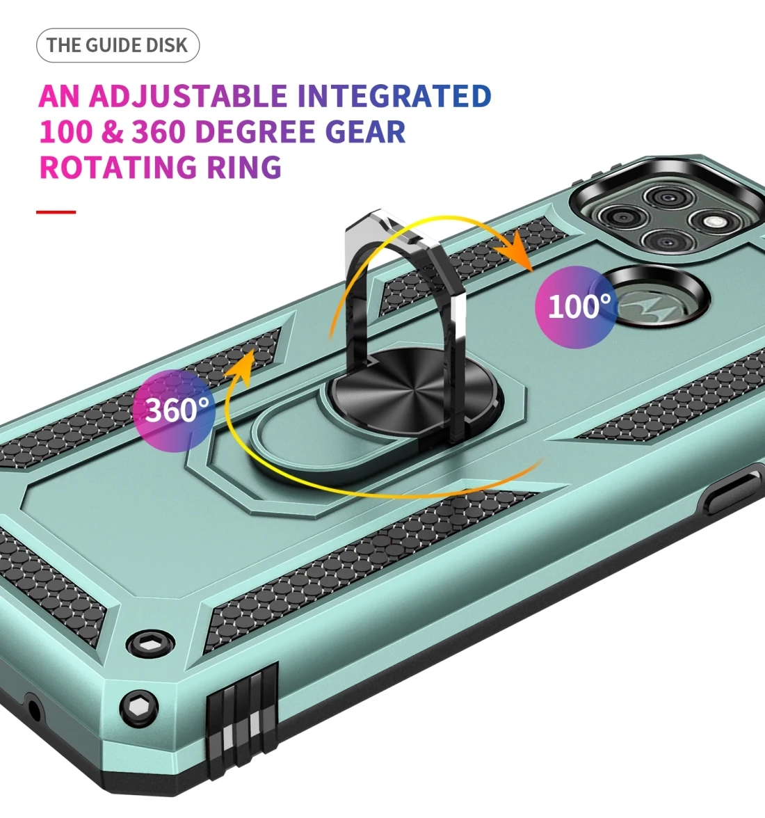 Ударопрочный защитный чехол из ТПУ и поликарбоната с поворотным держателем на 360 градусов для Motorola Moto G9 Power