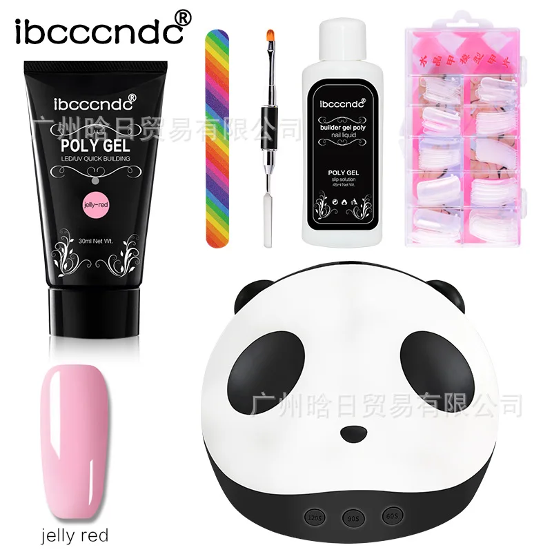 Посылка включает:1 x лампа для ногтей с пандой1x30 мл полигель для ногтей1 х 45 мл раствор скольжения1x100 шт. наконечники для ногтей1 x щетка для ногтей1 x пилка для ногтей