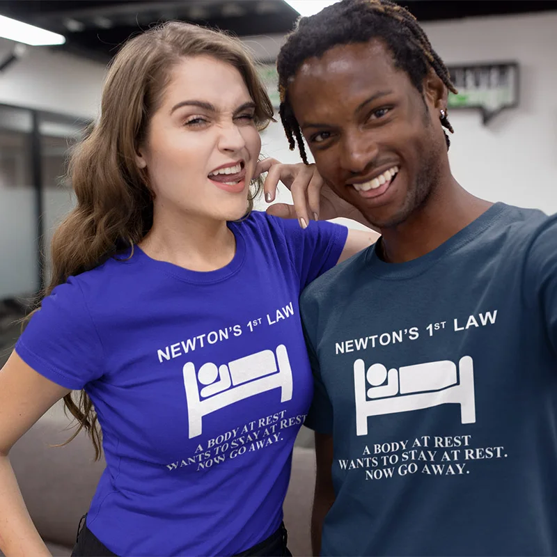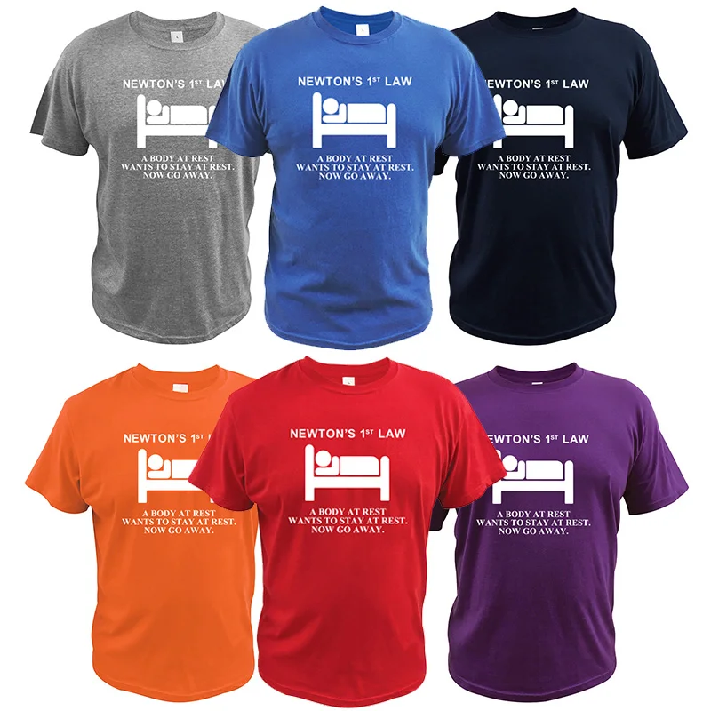 Футболка с надписью First Law Ньютона, футболка из 100% хлопка, европейский размер
