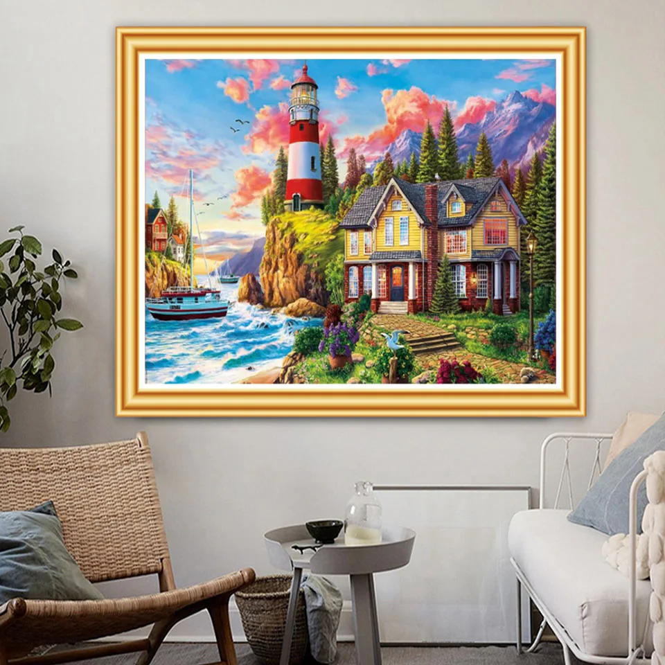 Картина из страз 5D "сделай сам", пейзаж, маяк, планета, бриллиантовая вышивка, набор из страз, мозаика, искусство, картина, украшение для дома
