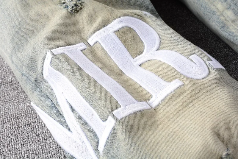 Джинсы мужские зауженные с вышивкой надписями, повседневные брюки S...
