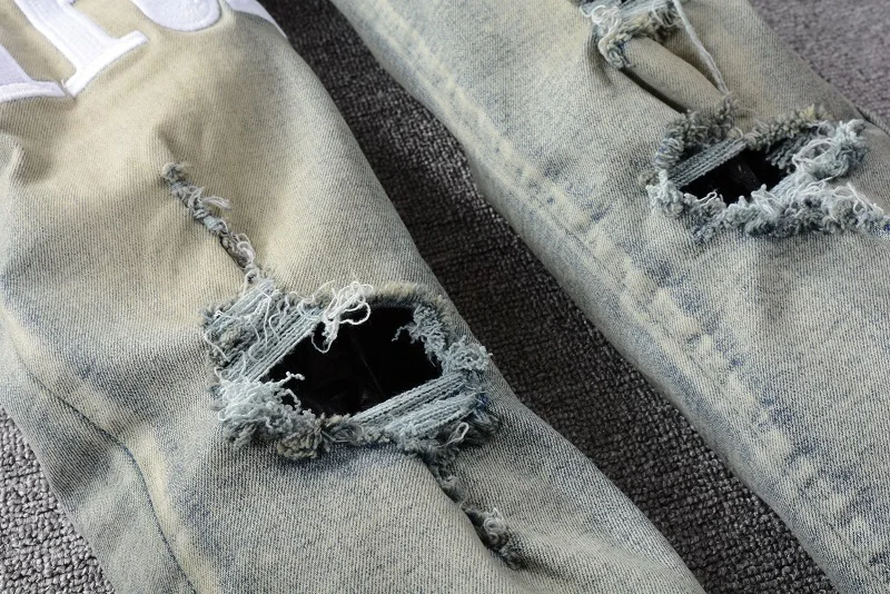 Джинсы мужские рваные в стиле ретро, модные штаны в стиле ретро, мотоцикл, рваные брюки в стиле панк