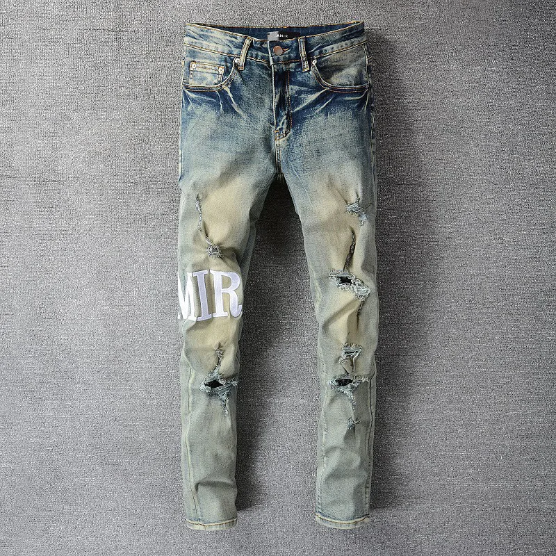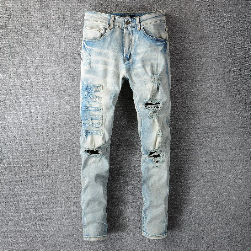 Рваные джинсы в стиле пэчворк, Брендовые брюки для мужчин, мотоцикл...