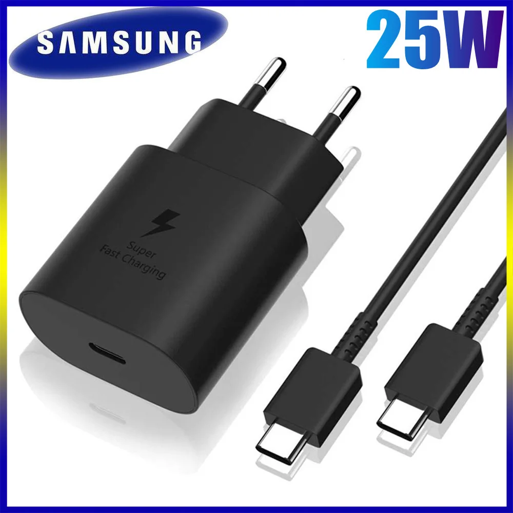 Оригинальное Супербыстрое зарядное устройство Samsung A20, 25 Вт, ЕС адаптер для быстрой зарядки, 3 А, Type C к Type C, кабель для GALAXY S20, S21, A90, Note 20