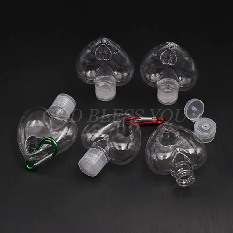 5 шт. 50 мл многоразовый портативный дезинфицирующее средство для рук в форме сердца бутылка маленький держатель для путешествий брелок-держатель Прямая поставка